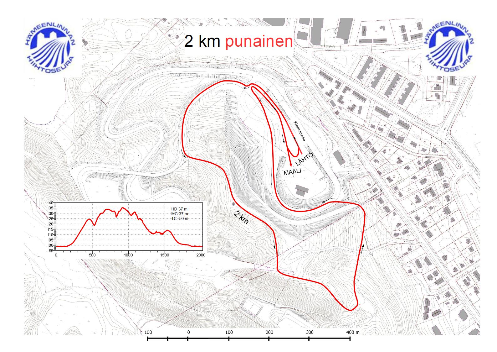 2 km punainen hyppyrimäen lenkki