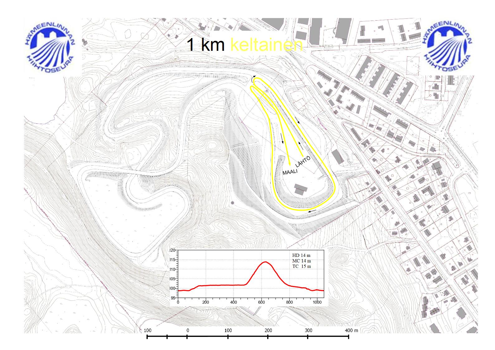 1 km V ( 1,3 km) keltainen varikon lenkki