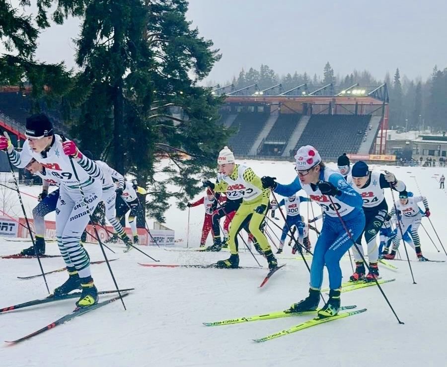 Välieriin ja lopputuloksissa kymmenen parhaan joukkoon hiihtivät myös M18-sarjalaiset Vilho Peltotalo (8.) ja Olli Seppälä (9.) Teuvan Rivakan Santtu Myllärin napatessa sarjan kultamitalin.