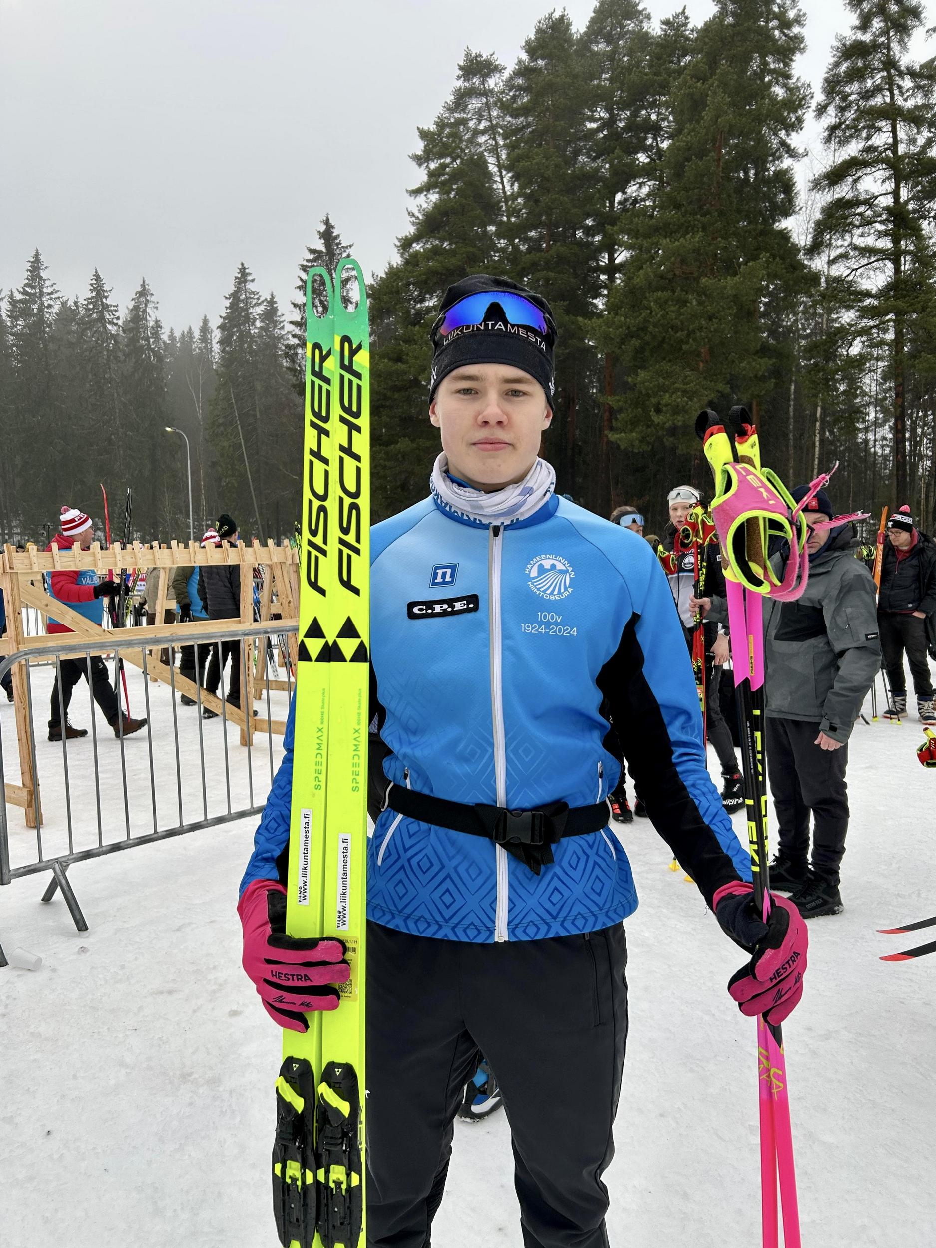 Välieriin ja lopputuloksissa kymmenen parhaan joukkoon hiihtivät myös M18-sarjalaiset Vilho Peltotalo (8.) ja Olli Seppälä (9.) Teuvan Rivakan Santtu Myllärin napatessa sarjan kultamitalin.